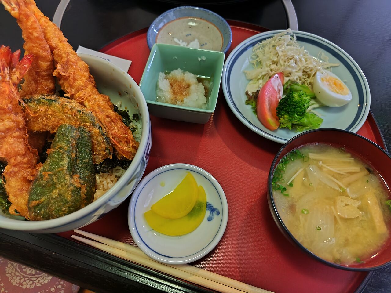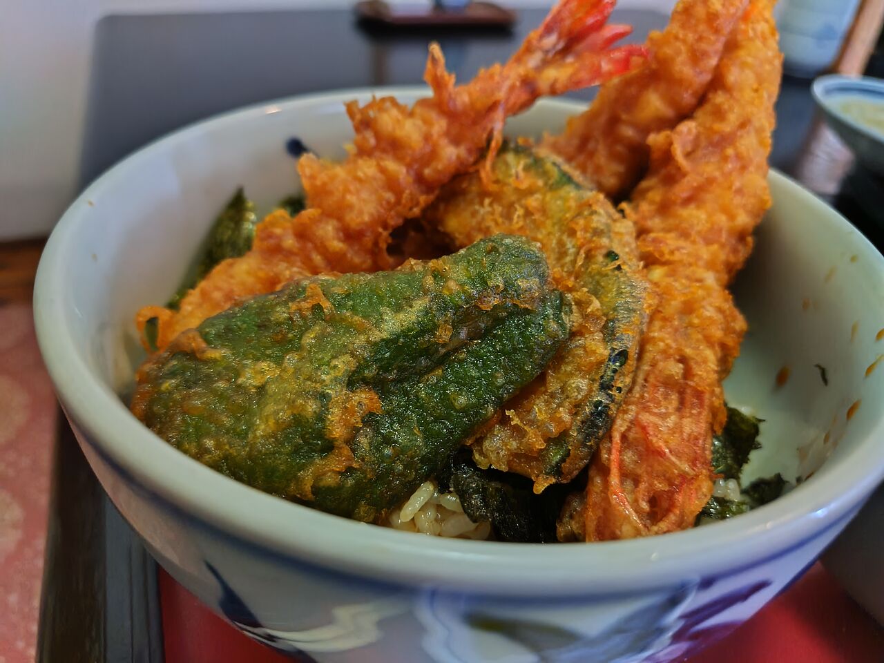 えび天は3尾入っていて、衣に醤油ベースの味を