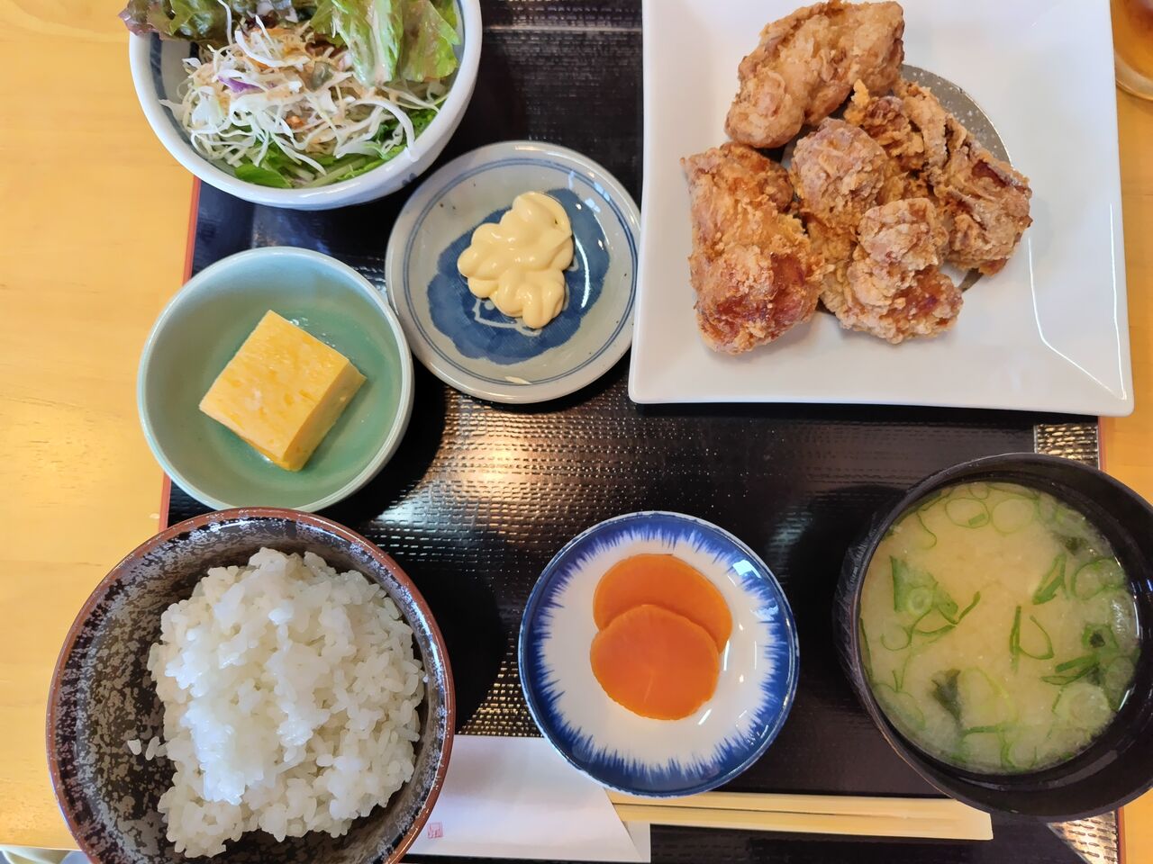 2024年10月21日 こんぺいとう いつの間にか店名が変わっていました。通りすがりのランチに利用しました。大橋の近くにある大通り沿いですが、裏には駐車場もありますし通いやすい場所になるかと思います。男性1人で切り盛りされてました。メニューは990円が主でした。わたしは唐揚げにしました。ご飯と味噌汁は定食における評価の基準にしていますが、美味しいです♪唐揚げもボリュームがあり味がしみていて良かったです。連れは生姜焼き定食でした。お客さんも多いし、人気店の様でした。ごちそうさまでした😋 「宮崎ランチとカフェ」カテゴリの最新記事 < 前の記事次の記事 > コメント コメントフォーム 名前 コメント 評価する リセット リセット 顔 星 投稿する 情報を記憶