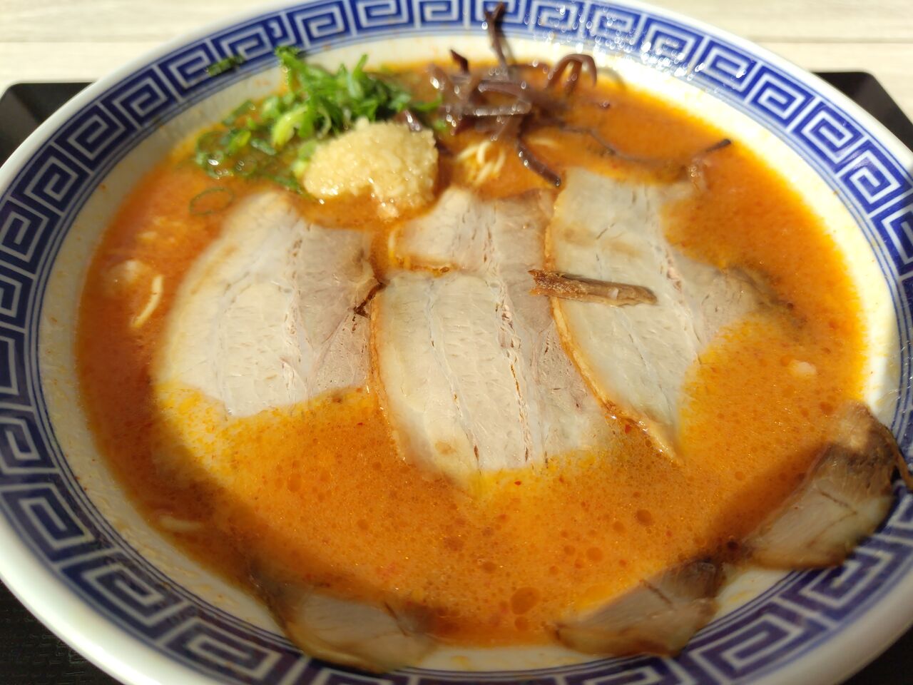 2024年12月22日 豚骨らーめん もくてきち イオンでの一人飯は二階のフードコートにて。唯一食べてなかったラーメン屋さん、カウンター席に近いのでこちらにしました。旨辛とんこつラーメンにしました。箸やレンゲ、調味スパイスはセルフでした。ニンニクは山盛りで頂いて、着席したらレンゲを取り忘れてがっくりしました(笑)麺は博多とんこつですね。 とんこつでもあっさり美味しいぴり辛でした。チャーシューは想像よりは薄切りかも。美味しく頂きました♪ 「宮崎ランチとカフェ」カテゴリの最新記事 < 前の記事次の記事 > コメント コメントフォーム 名前 コメント 評価する リセット リセット 顔 星 投稿する 情報を記憶