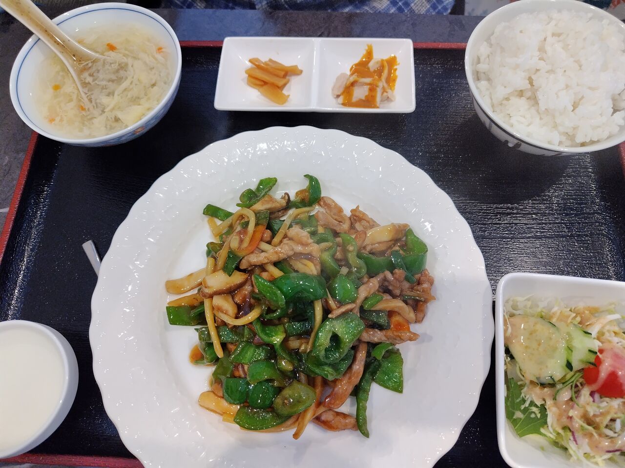 連れは青椒肉絲定食にしていました。